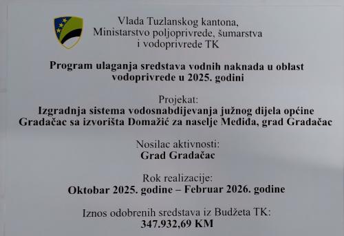Izgradnja sistema vodosnabdijevanja južnog dijela općine Gradačac sa izvorišta Domažić za naselje Međiđa, grad Gradačac