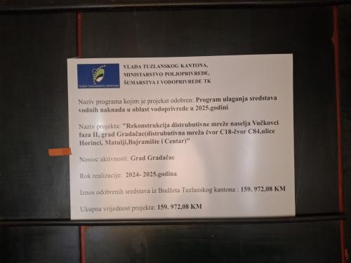 Rekonstrukcija distributivne mreže naselja Vučkovci, grad Gradačac - faza II (distributivna mreža čvor C18 - čvor C84, ulice Horinci, Matulji, Bajramište i Centar)